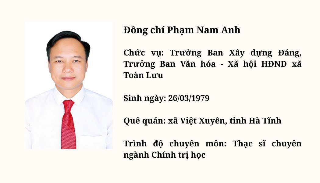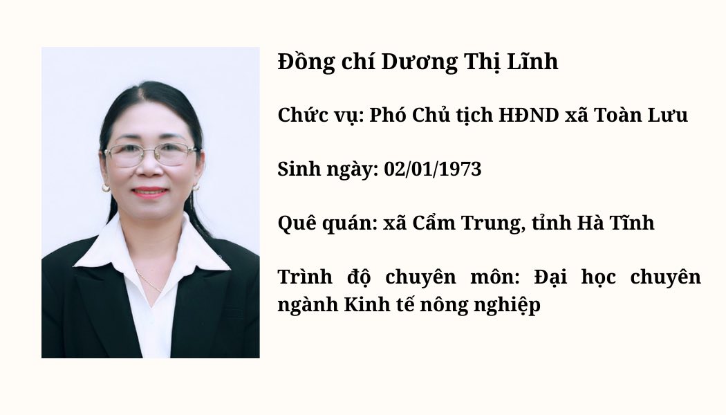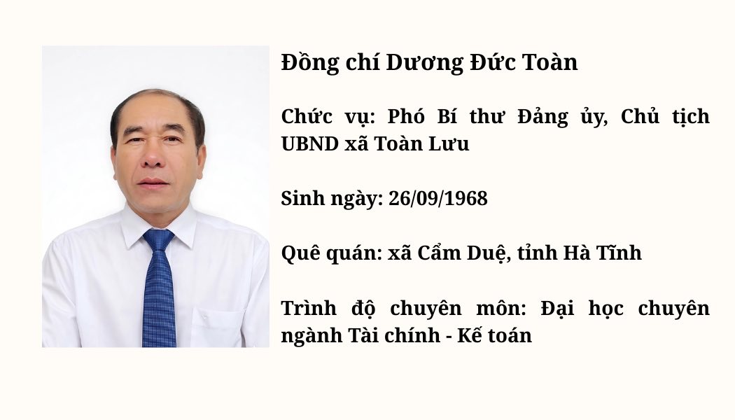 Tại kỳ họp thứ nhất HĐND xã Toàn Lưu khóa II, NK 2026 -2031 diễn ra vào chiều nay 30/03/2026, các đại biểu HĐND xã Toàn Lưu khóa II, NK 2026 – 2031 đã thống nhất, tín nhiệm bầu bà Bùi Thị Hoàng Oanh Bí thư Đảng ủy giữ chức Chủ tịch HĐND xã, bà Dương Thị Lĩnh giữ chức Phó Chủ tịch HĐND xã; ông Dương Đức Toàn PBT Đảng ủy giữ chức Chủ tịch UBND xã, các đồng chí Trần Bá Hoành, Nguyễn Hữu Tuấn giữ chức Phó Chủ tịch UBND xã, số phiếu tán thành 100%.