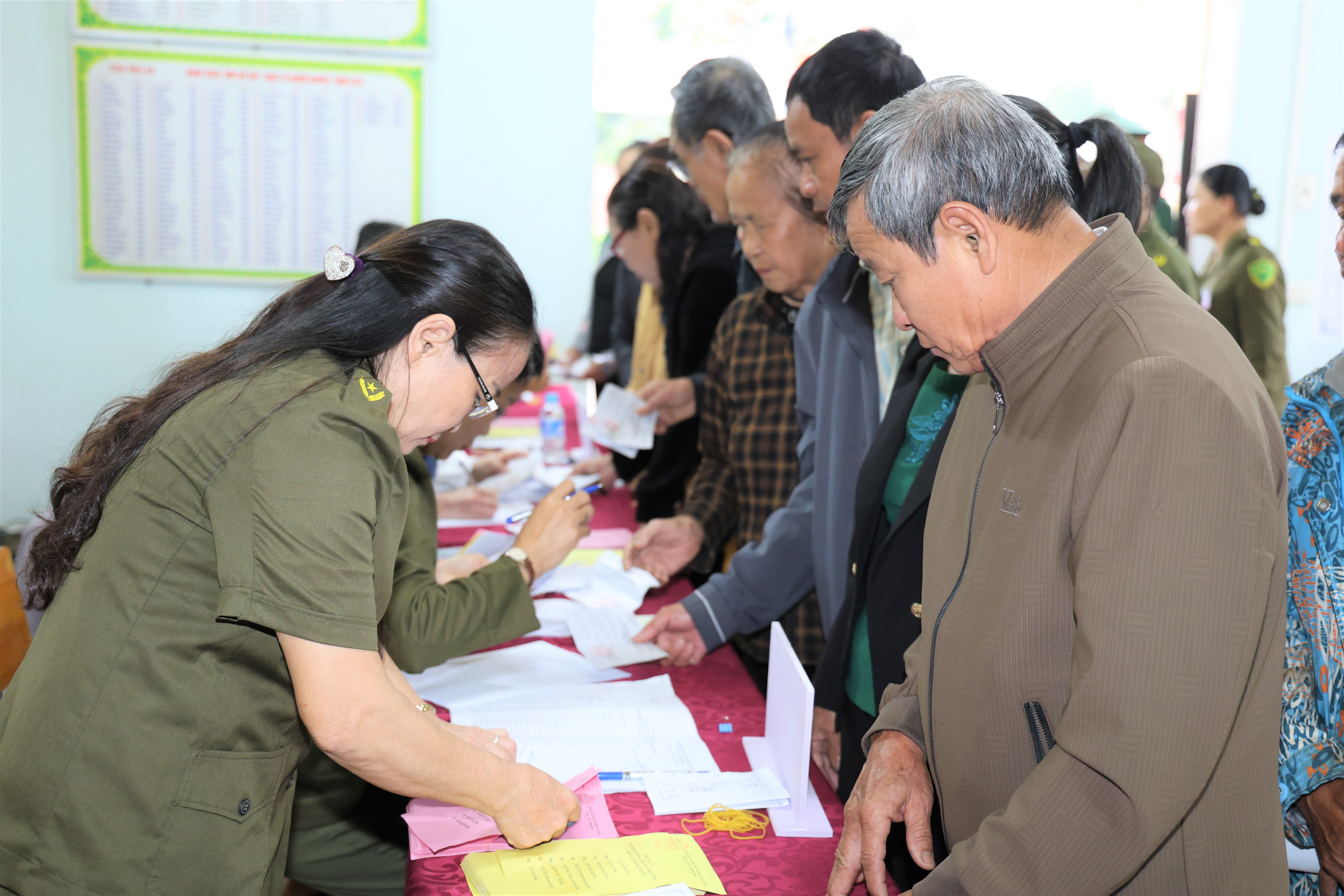 Tổ bầu cử hướng dẫn, phát phiếu bầu cử cho cử tri sau khi cử tri xuất trình thẻ cử tri