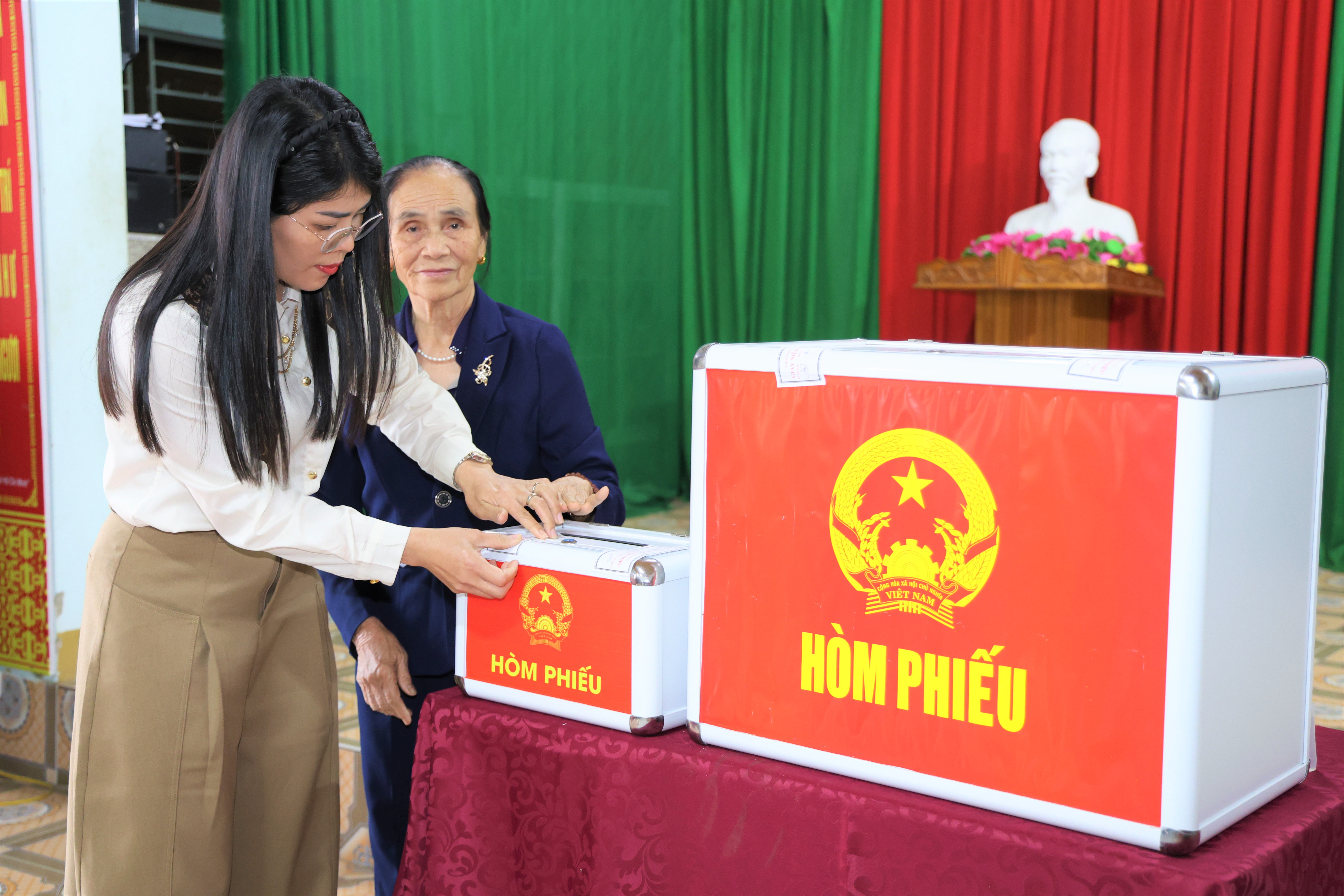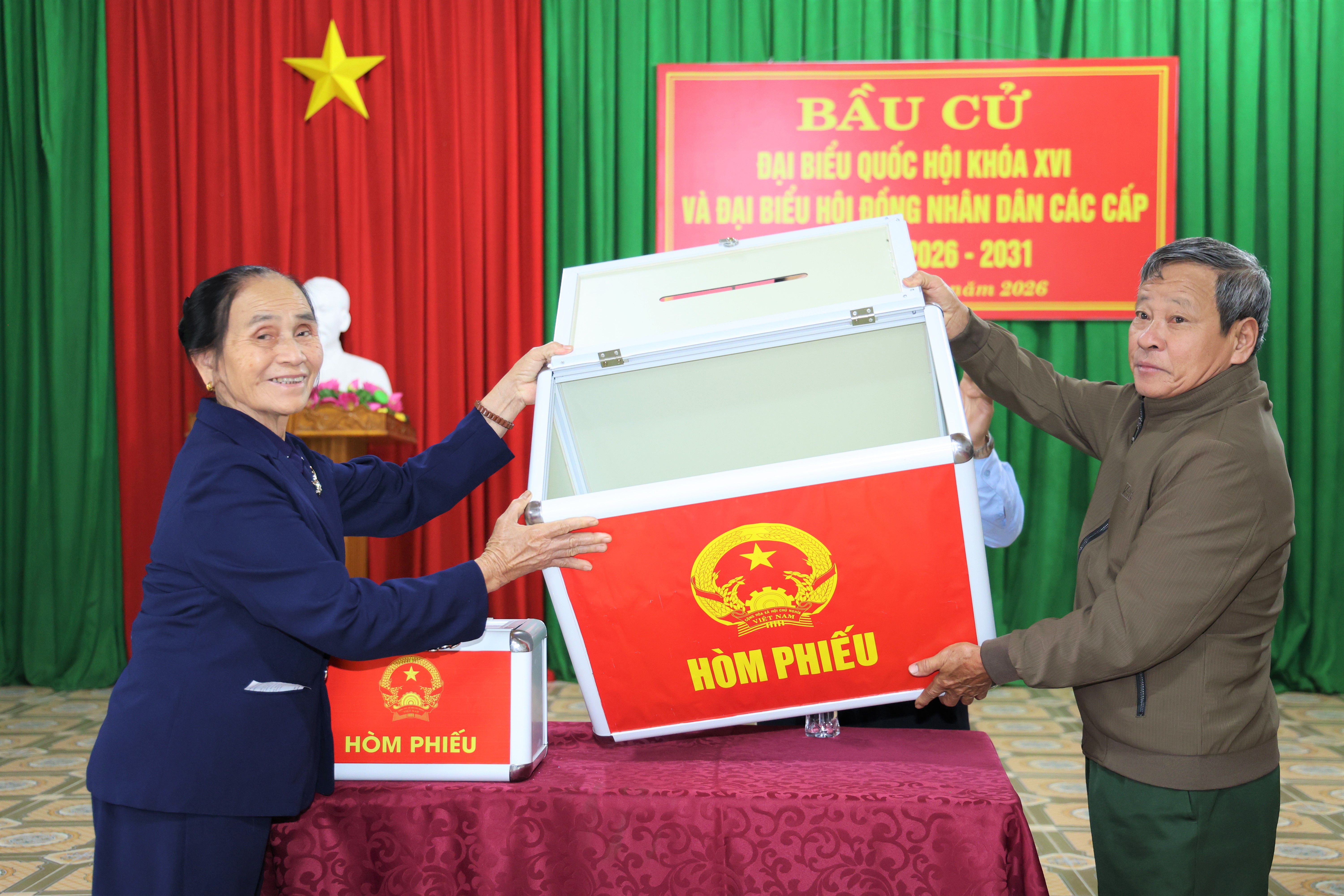 Tại khu vực bỏ phiếu, công tác tổ chức được triển khai nghiêm túc, dân chủ, đúng quy định. Ngay sau khi thực hiện các nội dung trong phần khai mạc, thực hiện nghi lễ chào cờ, tuyên bố lý do, giới thiệu thành phần tham dự; Thông báo số lượng cử tri của khu vực bỏ phiếu; Mời cử tri chứng kiến việc kiểm tra, niêm phong hòm phiếu trước khi bỏ phiếu; Công bố giờ bắt đầu bỏ phiếu và nhấn mạnh quyền, nghĩa vụ của cử tri, các tổ bầu cử bắt đầu thực hiện các bước hướng dẫn cử tri bỏ phiếu bầu cử đúng theo quy trình, quy định. Từ việc kiểm tra danh sách, nhận phiếu, vào phòng viết phiếu đến bỏ phiếu, đóng dấu xác nhận đã bỏ phiếu được cử tri thực hiện đảm bảo trật tự, an toàn, dân chủ, minh bạch.
