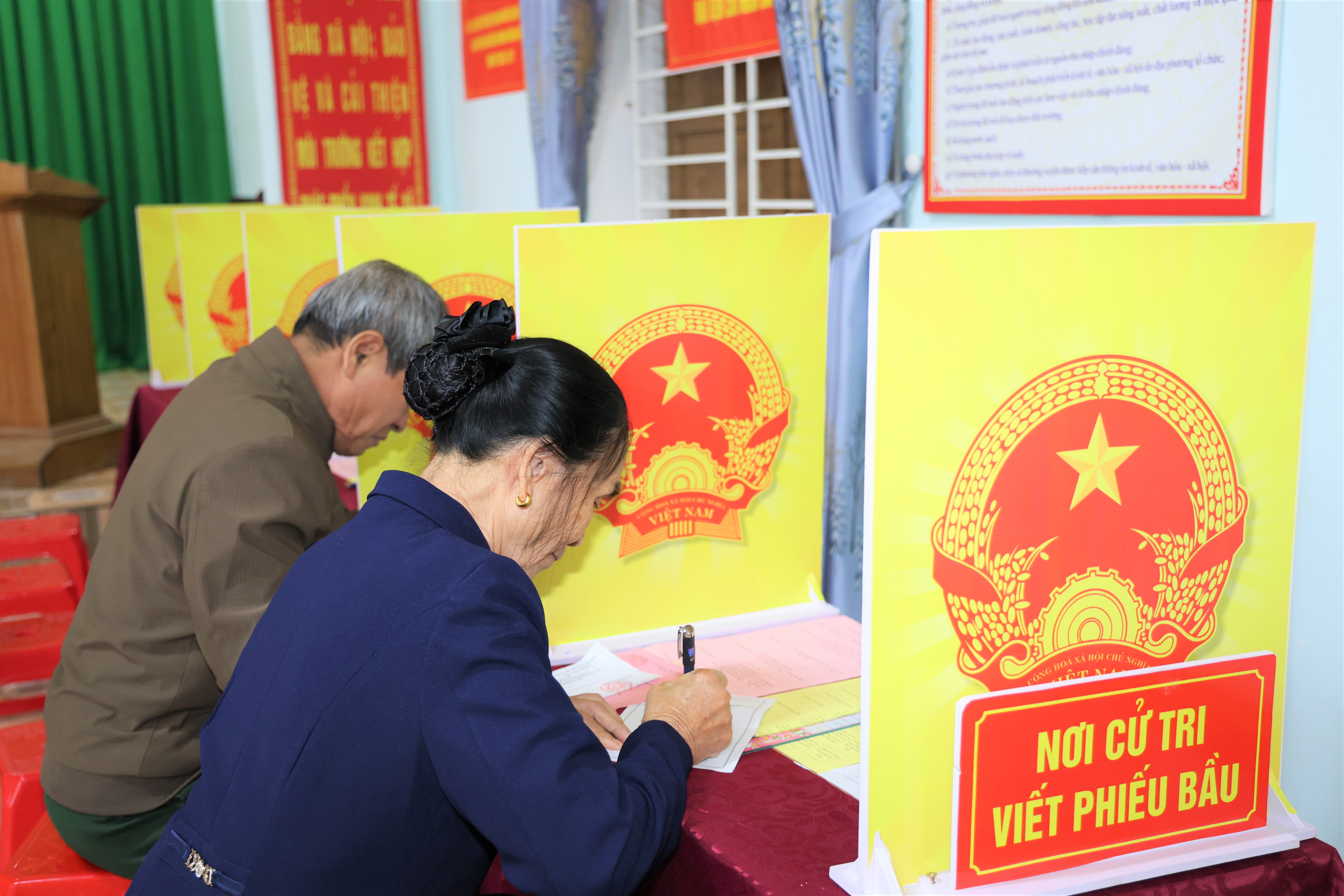 Cử tri vào phòng viết phiếu bầu để lựa chọn ra các đại biểu Quốc hội, HĐND các cấp, NK 2026 - 2031