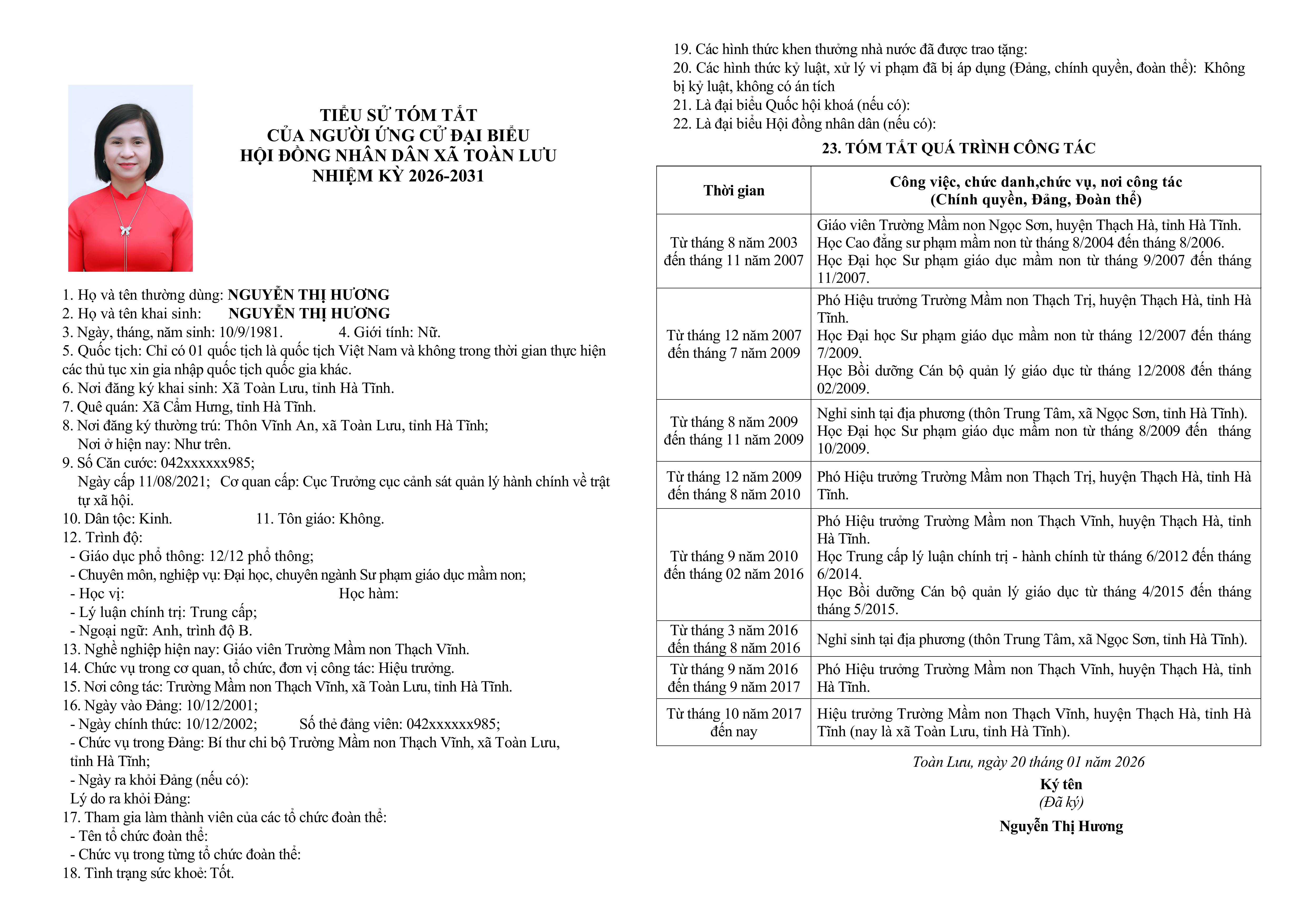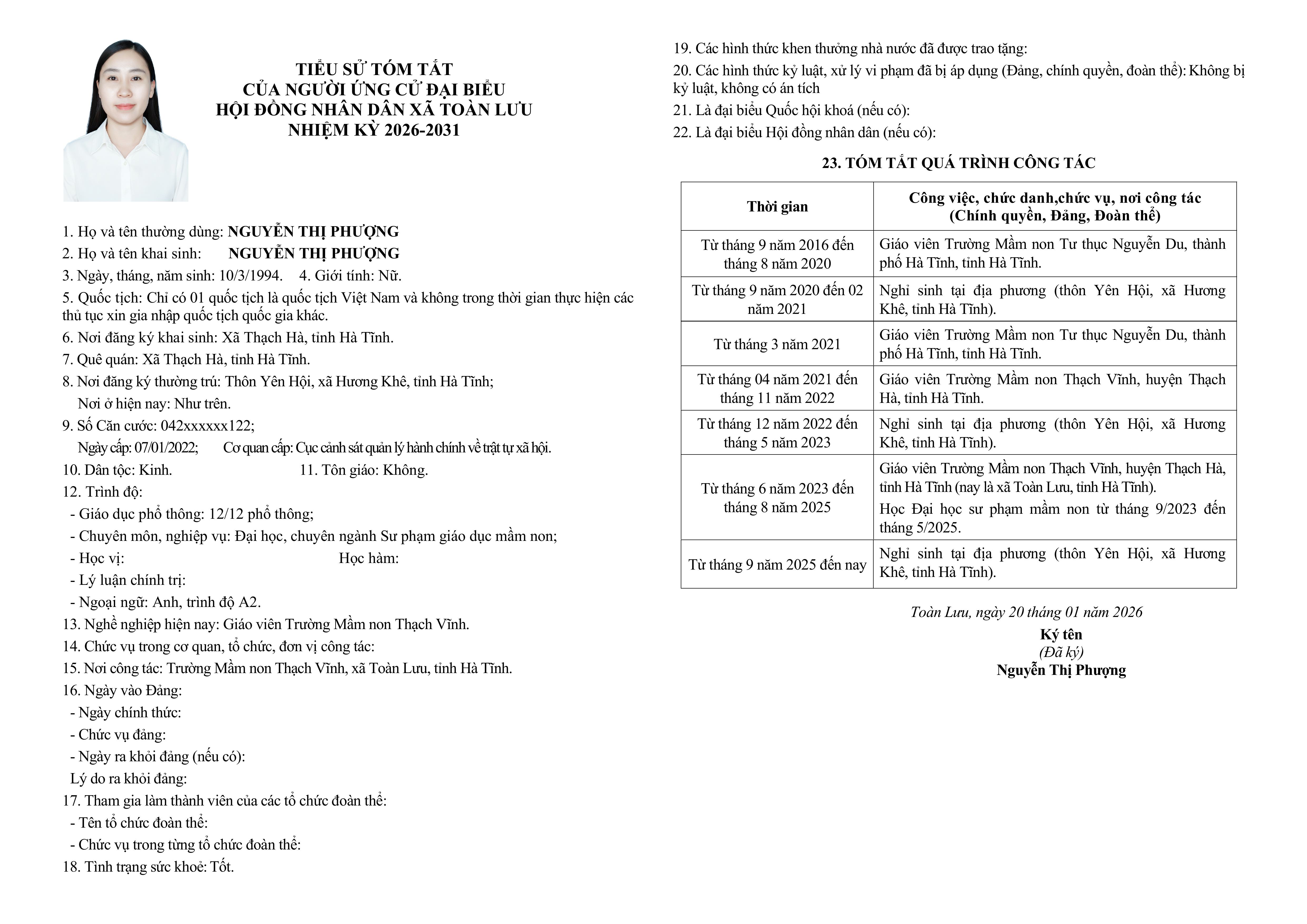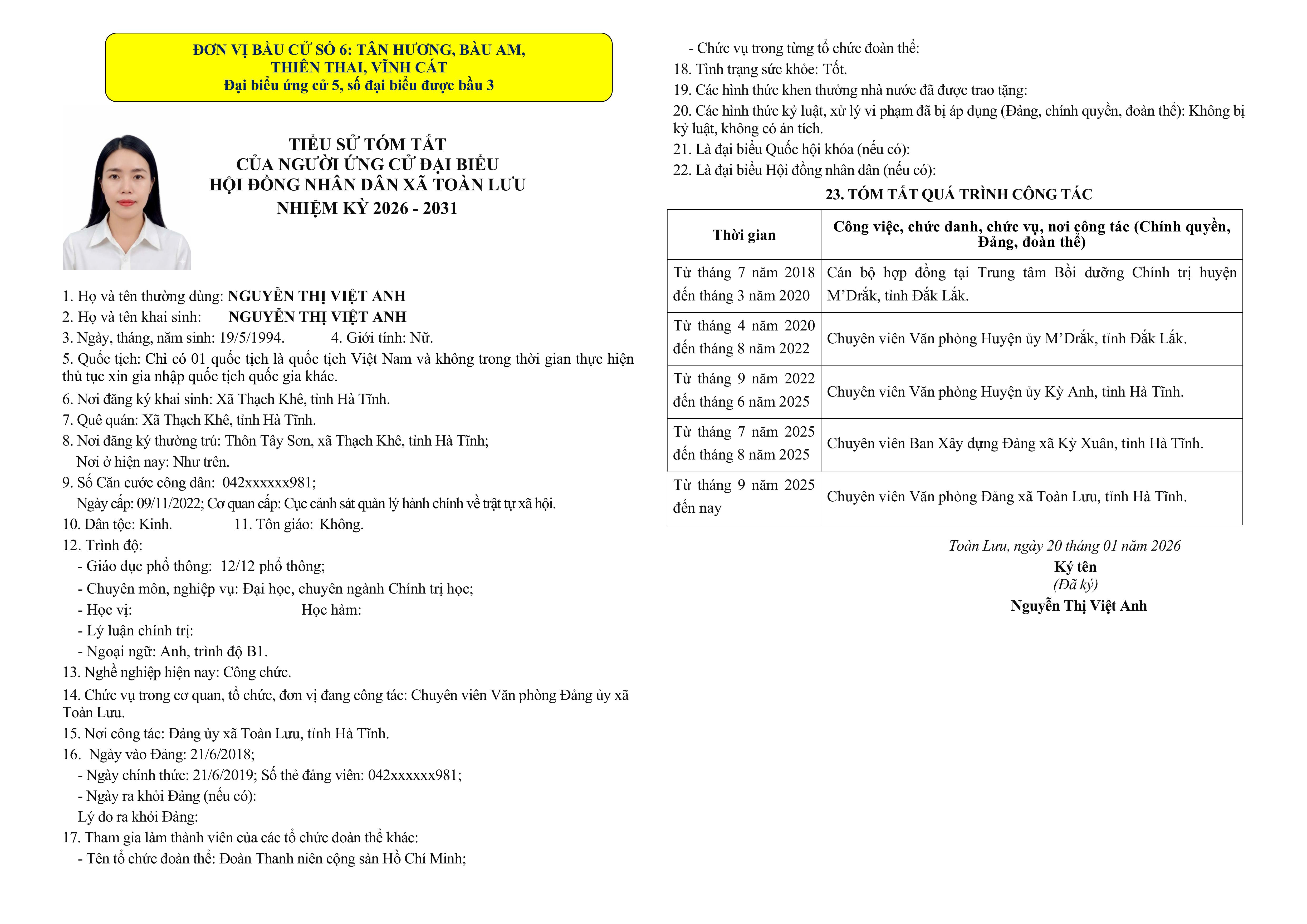 1. Nguyễn Thị Việt Anh - Chuyên viên Văn phòng Đảng ủy xã.