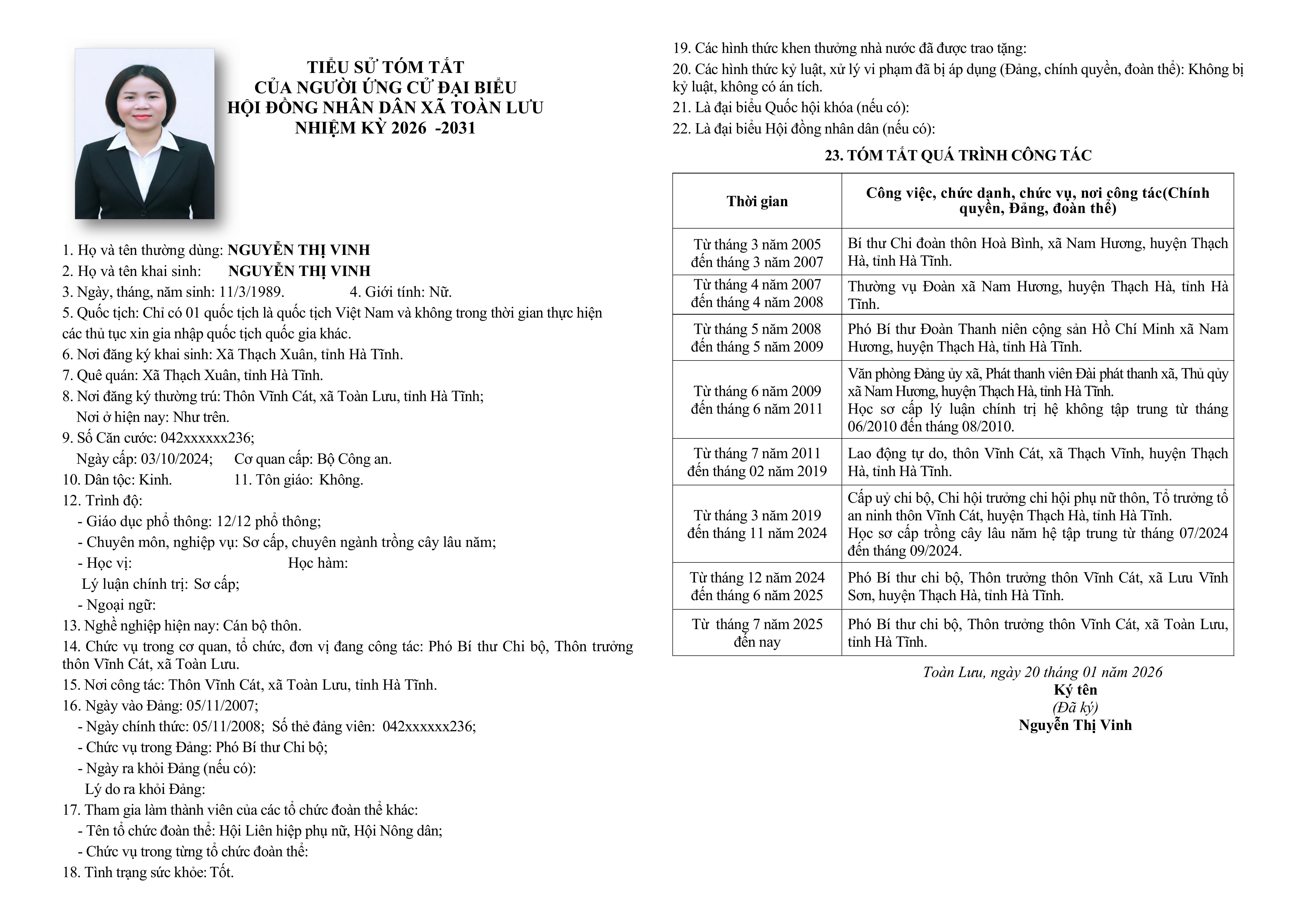 5. Nguyễn Thị Vinh - Phó Bí thư Chi bộ, Thôn trưởng thôn Vĩnh Cát.