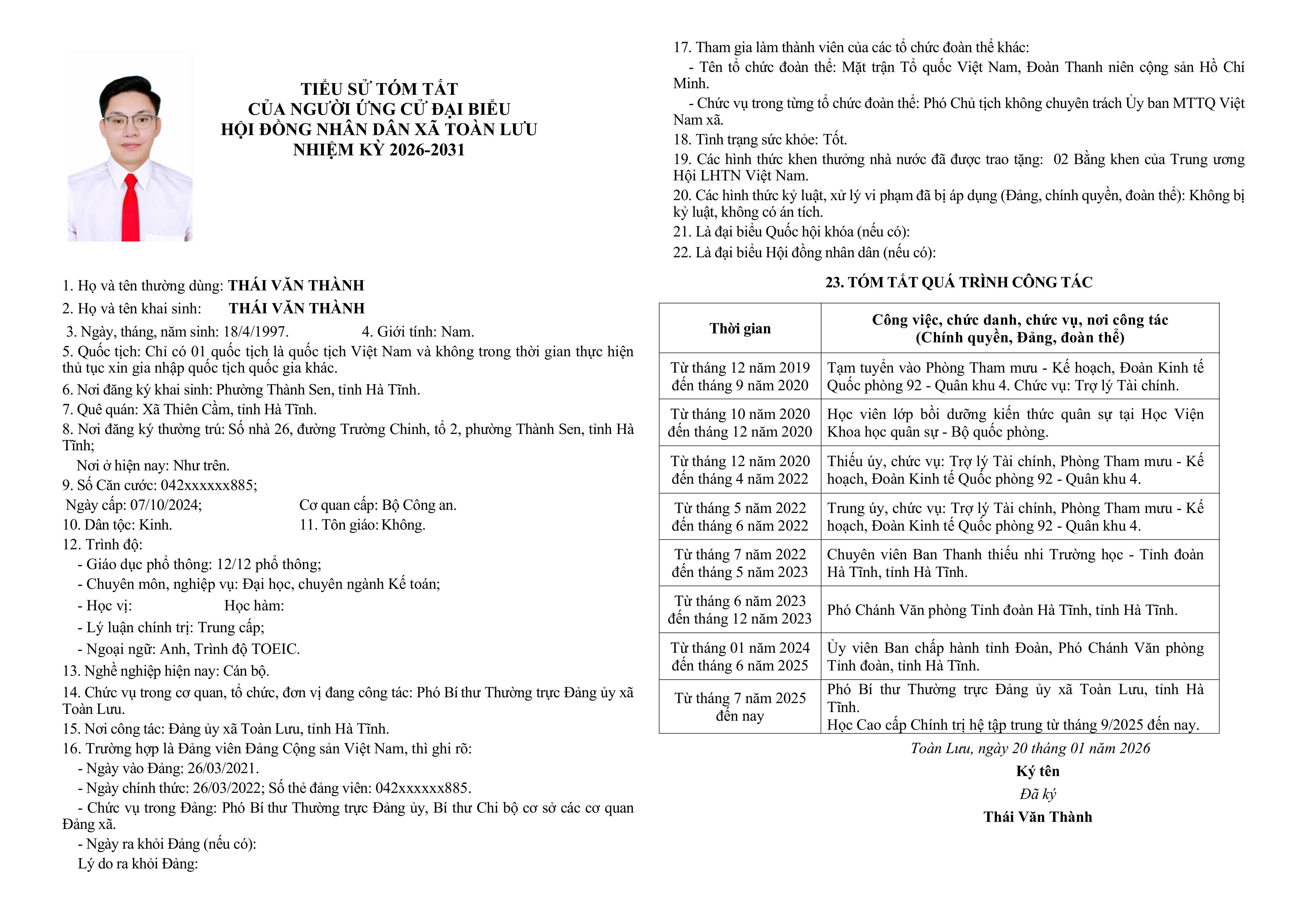 4. Thái Văn Thành - Phó Bí thư Thường trực Đảng ủy xã.