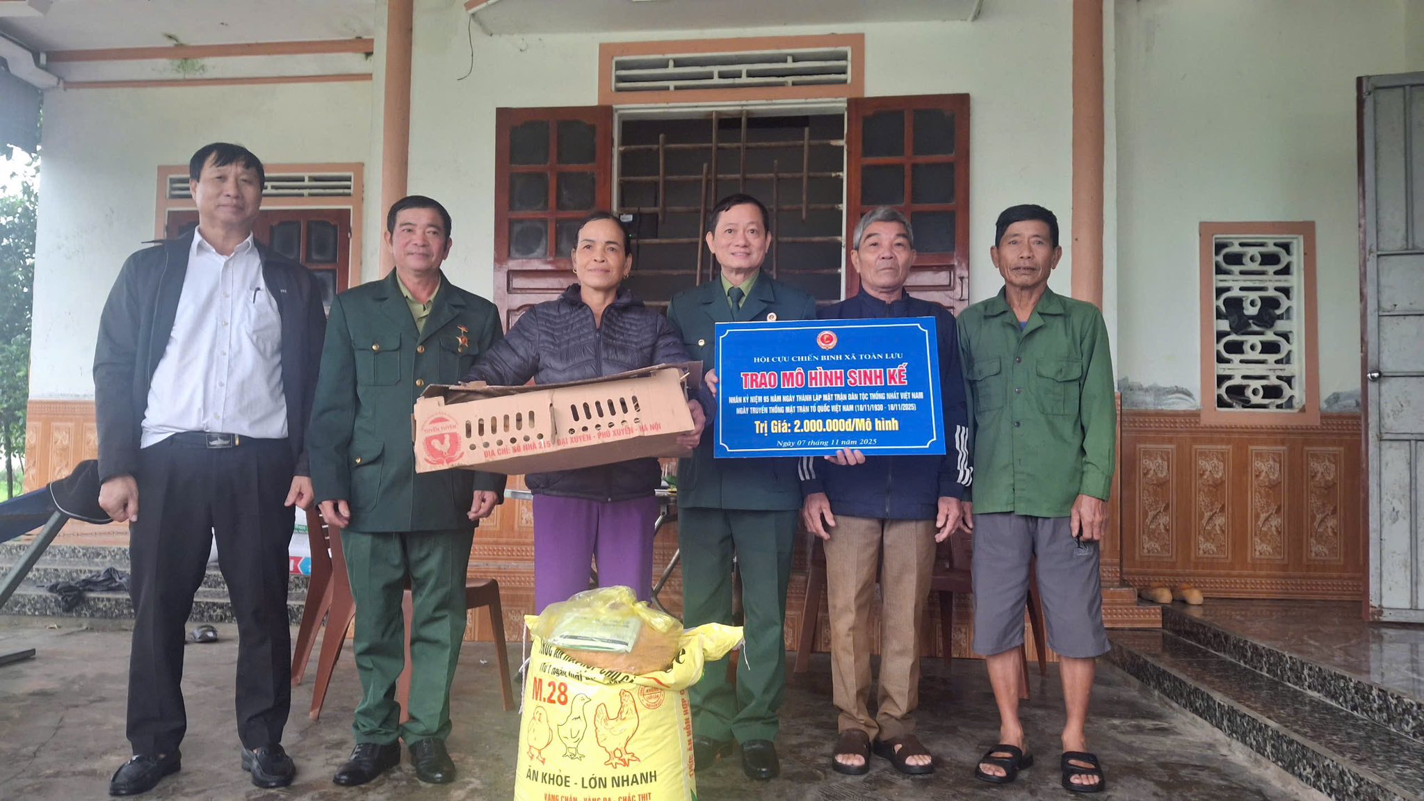 Nhân kỷ niệm 95 năm Ngày thành lập Mặt trận Dân tộc Thống nhất Việt Nam (18/11/1930 - 18/11/2025), Hội Cựu chiến binh xã Toàn Lưu đã tổ chức chương trình trao tặng mô hình sinh kế cho các hội viên thuộc diện hộ nghèo, hộ cận nghèo trên địa bàn xã.