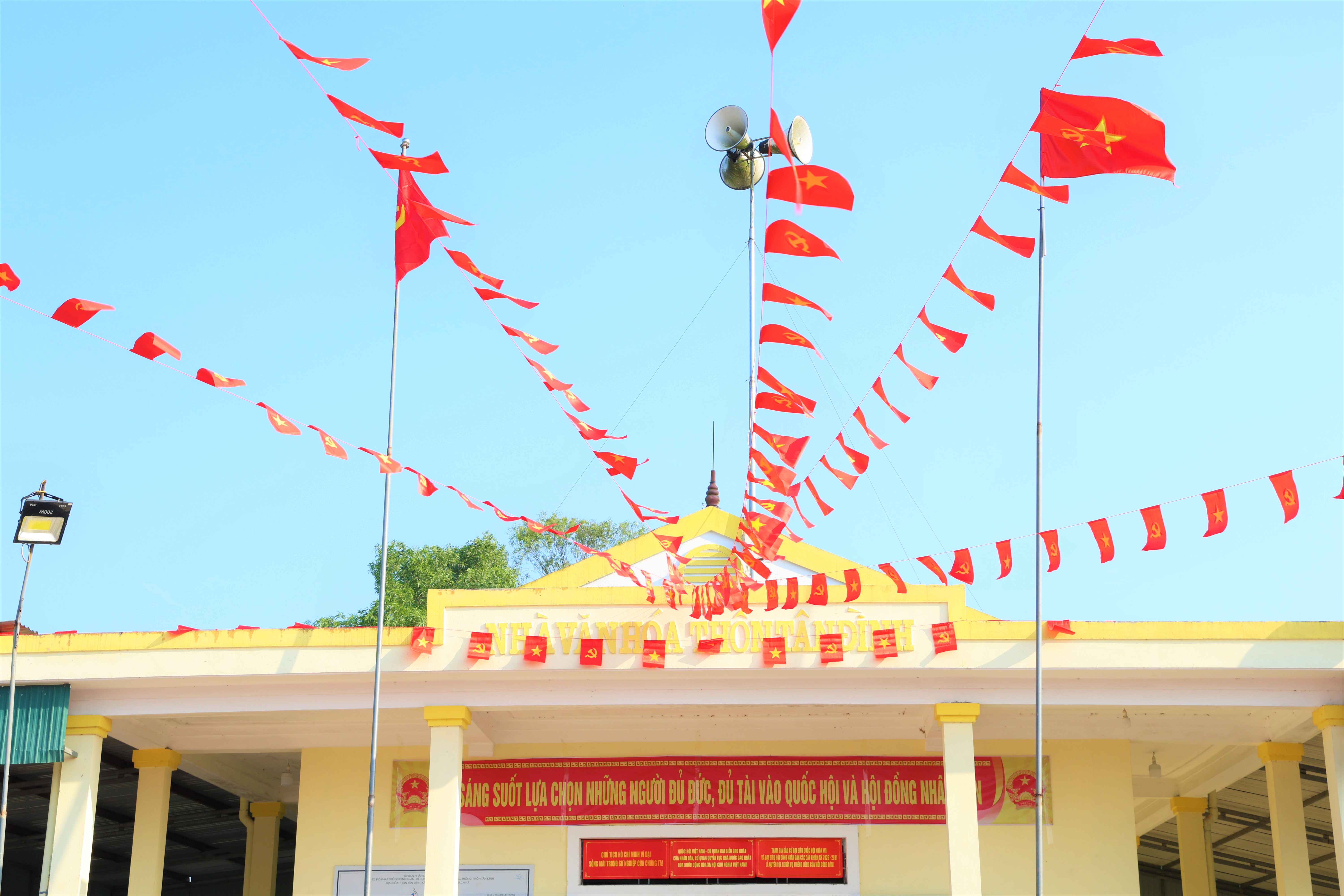 Một số điểm đã hoàn thành việc trang trí khánh tiết, tuyên truyền trực quan ở cả khu vực bên trong, bên ngoài với nhiều băng rôn, khẩu hiệu, áp phích tuyên truyền bầu cử kết hợp với cờ hoa rực rỡ tạo điểm nhấn về cảnh quan, đem lại màu sắc tươi vui, tạo khí thế rộn ràng trước ngày hội non sông.