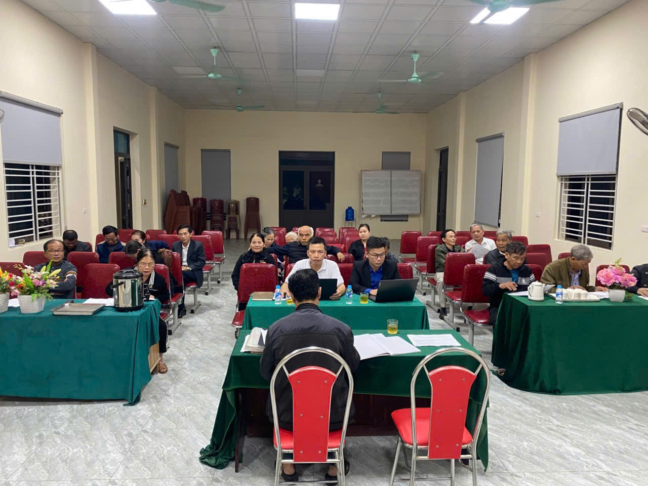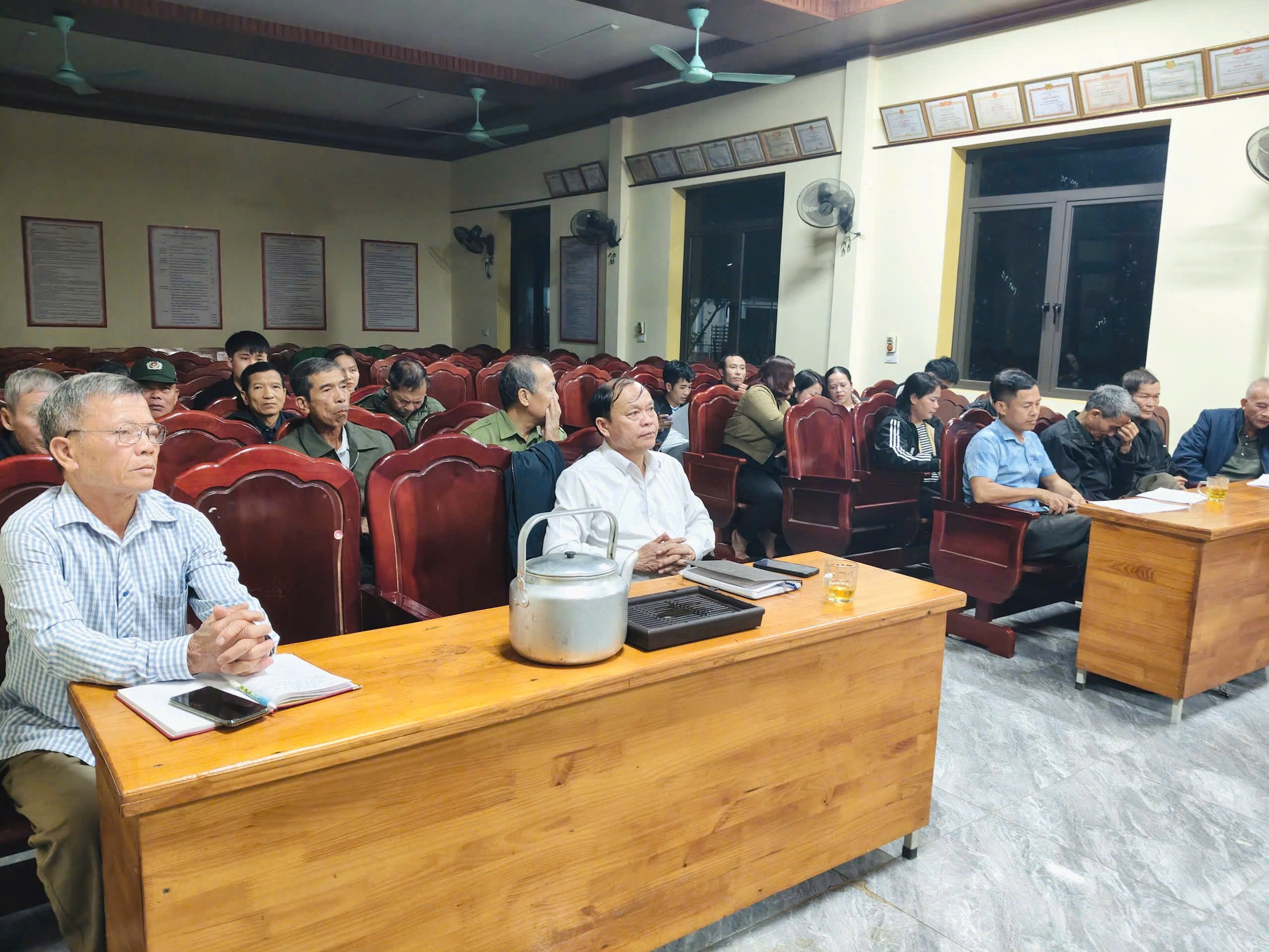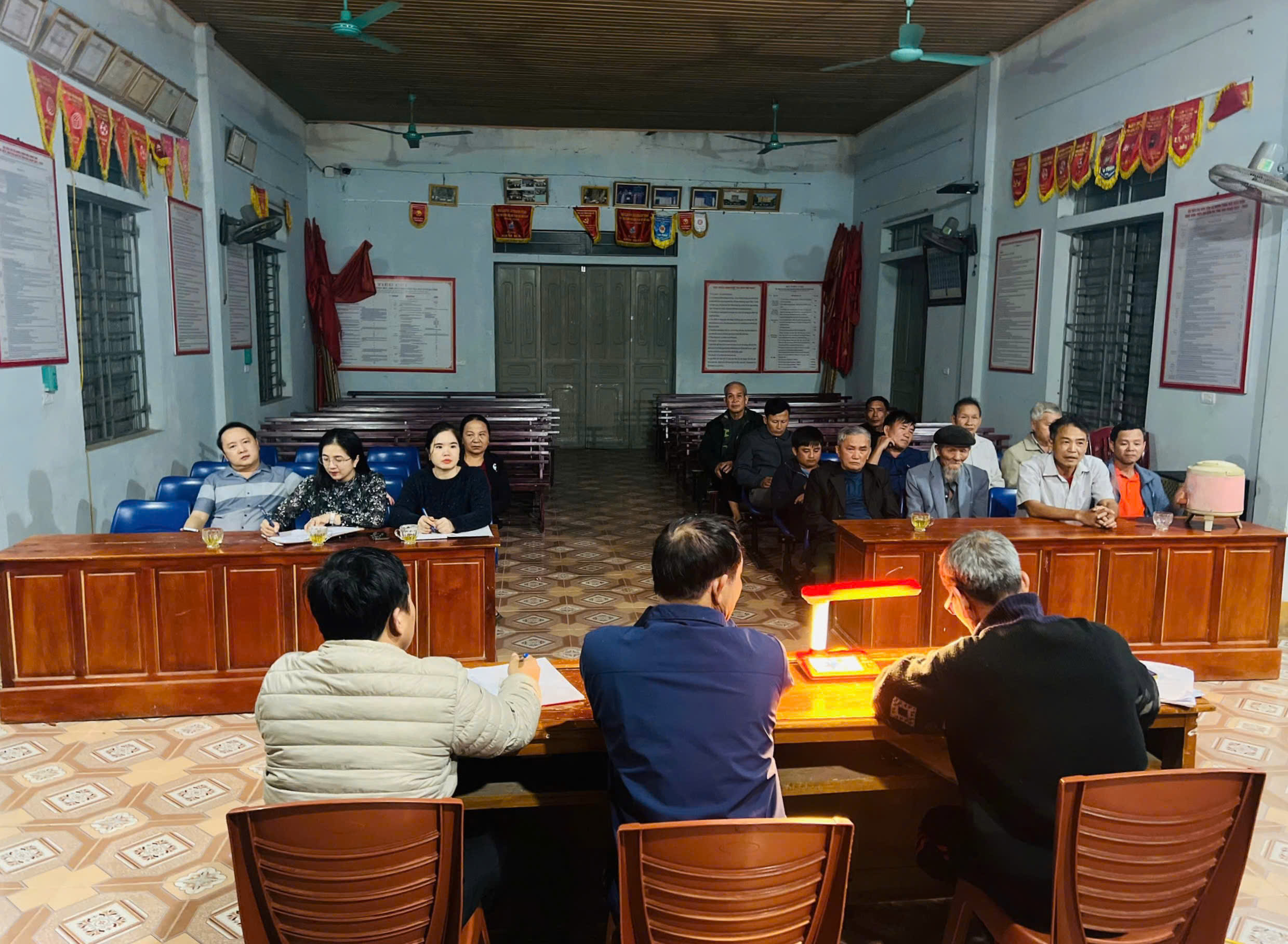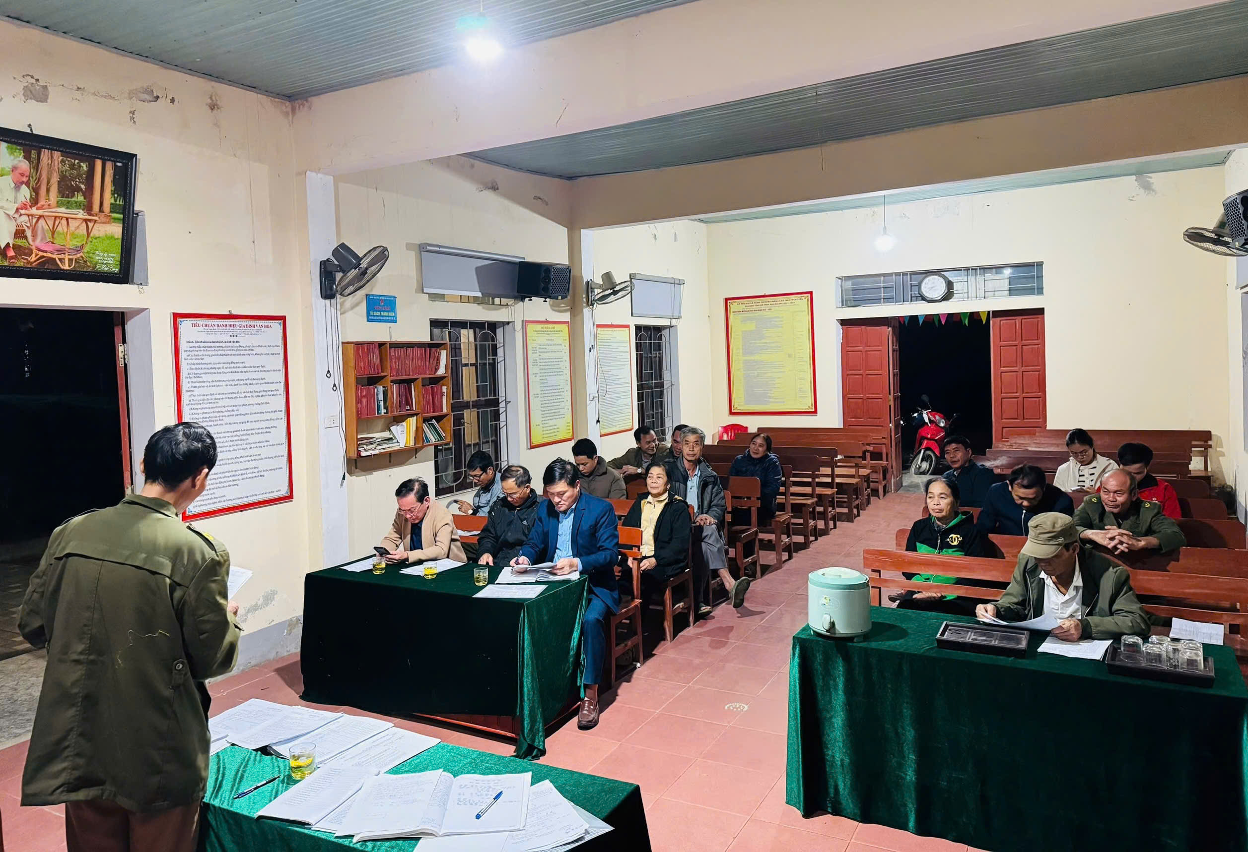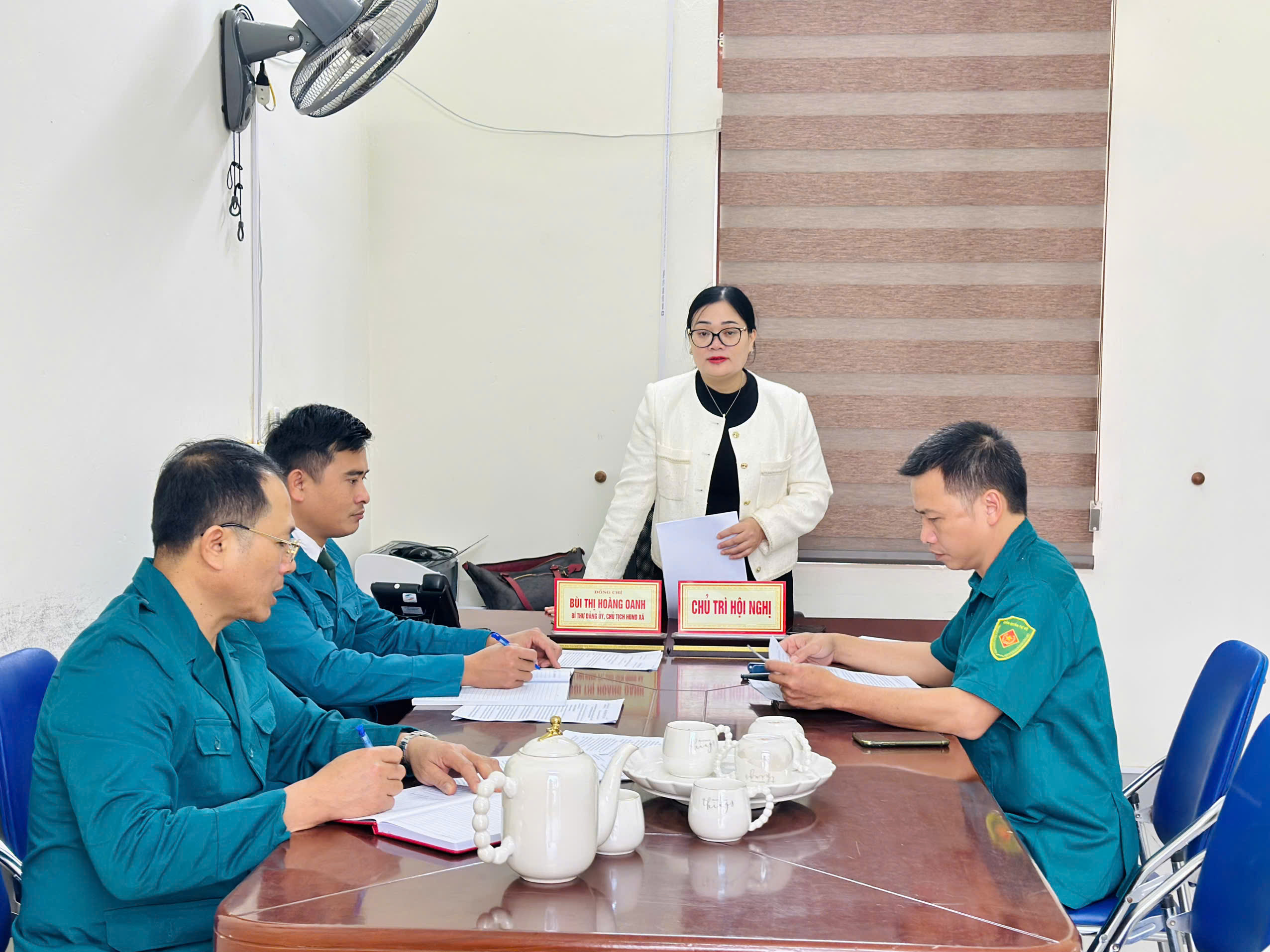 Bí thư Đảng ủy Bùi Thị Hoàng Oanh dự kiểm điểm tại chi bộ Quân sự xã