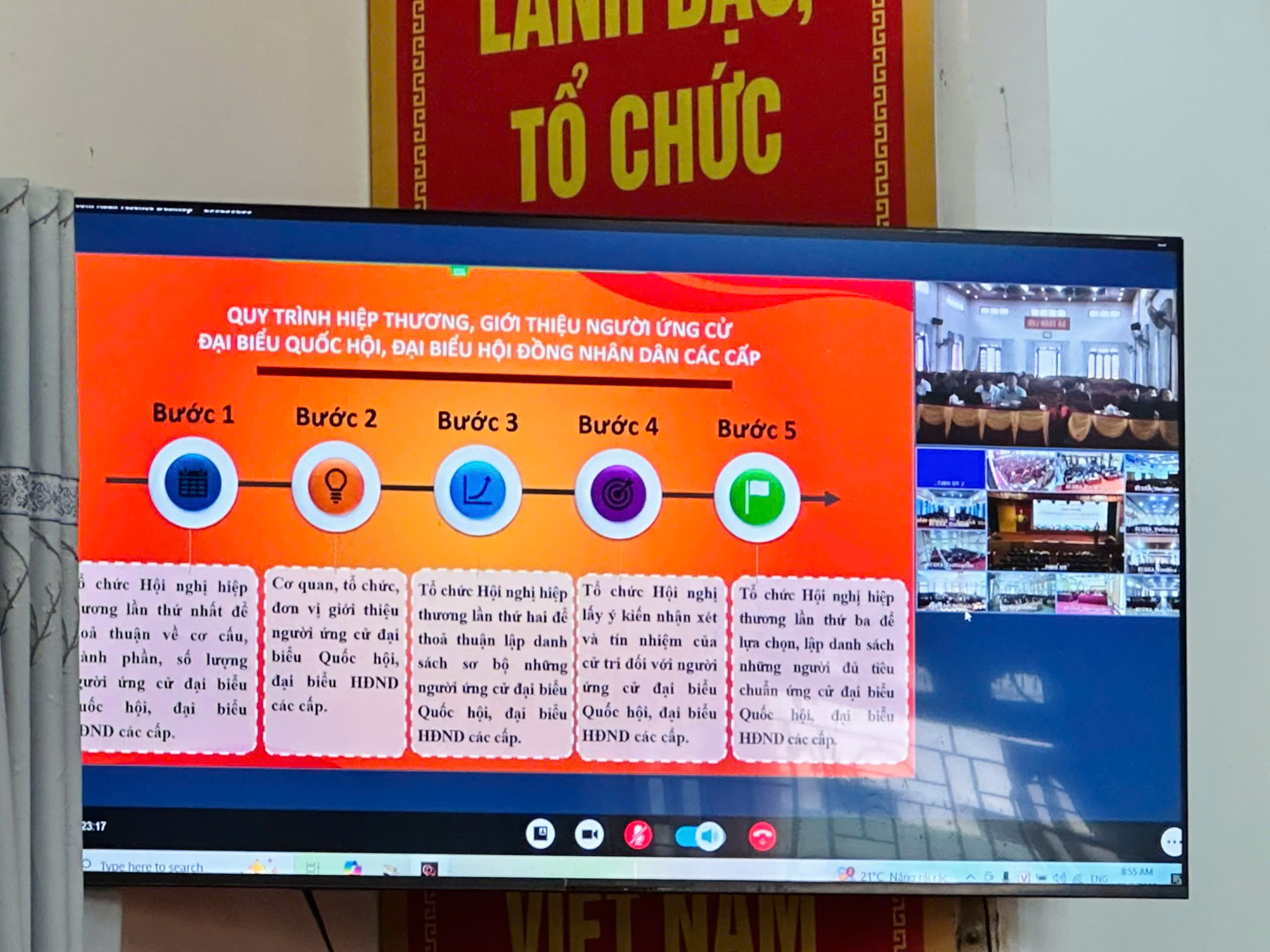 Bên cạnh đó, nắm bắt các nội dung về quy trình hiệp thương giới thiệu người ứng cử đại biểu đại biểu Quốc hội khóa XVI, đại biểu HĐND các cấp, NK 2026 -2031 đảm bảo 5 bước theo quy định; kế hoạch của UBBC tỉnh, một số điểm mới, lưu ý trong công tác chuẩn bị và tổ chức bầu cử theo luật bầu cử sửa đổi các thông tư, hướng dẫn của bộ Nội vụ liên quan đến công tác bầu cử…