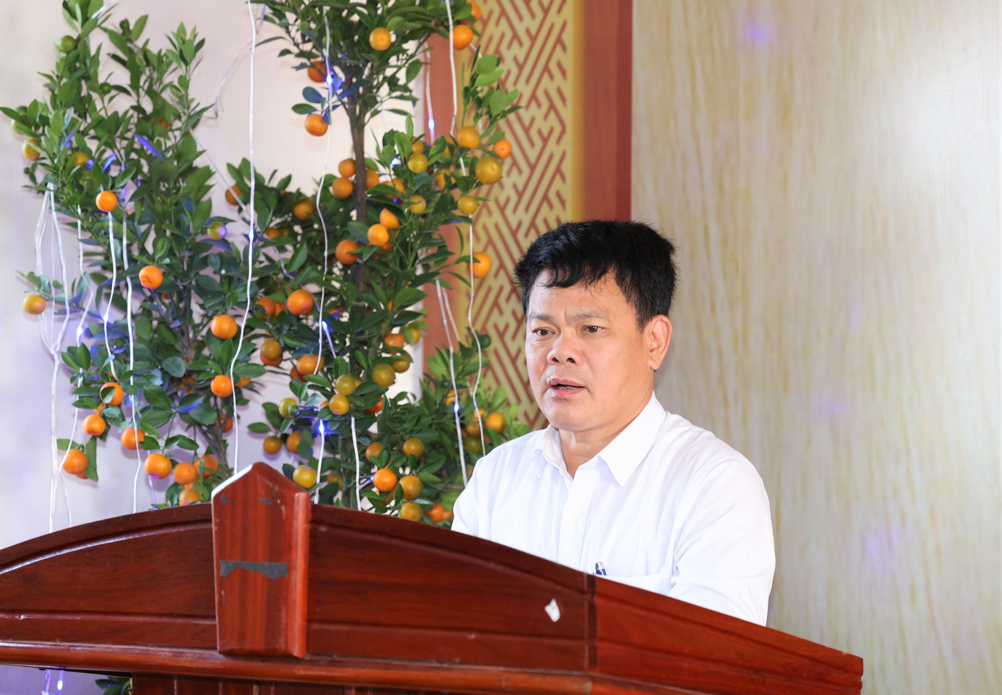 Chủ tịch UBMTTQ xã Toàn Lưu Phạm Trường An phát biểu khai mạc, quán triệt, triển khai một số nội dung để thảo luận tại Hội nghị