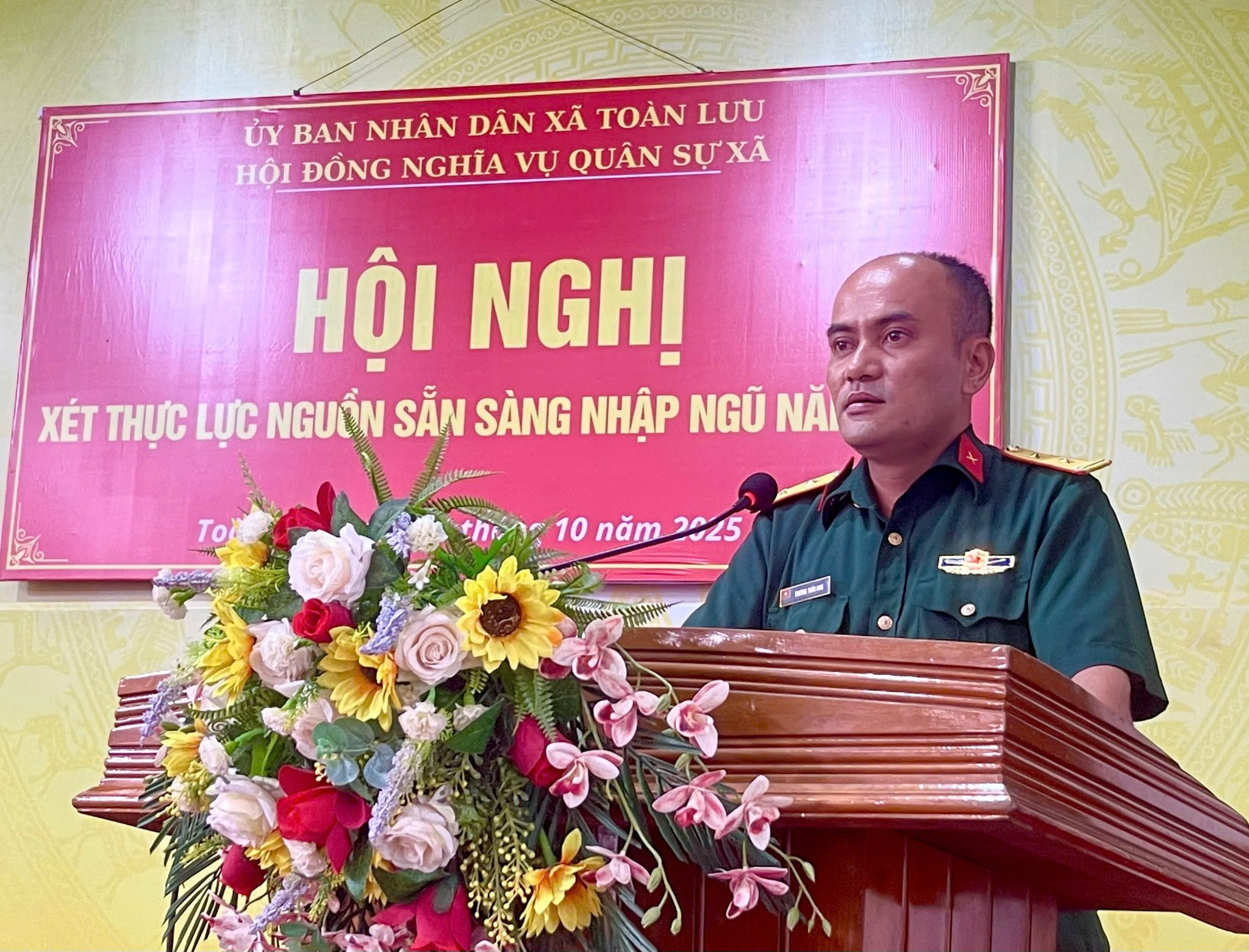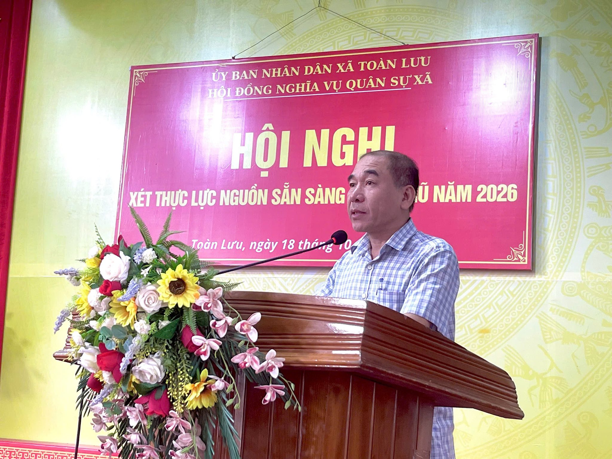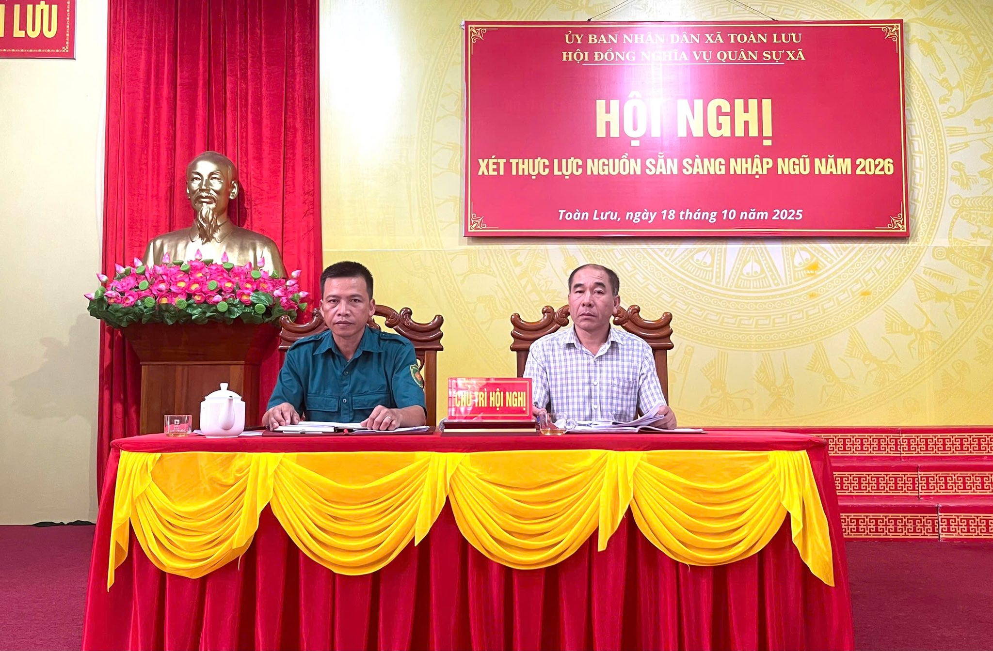 Thực hiện hướng dẫn của Bộ CHQS tỉnh Hà Tĩnh, UBND xã Toàn Lưu đã ban hành kế hoạch và tổ chức Hội nghị xét thực lực chuẩn bị nguồn nhập ngũ năm 2026.