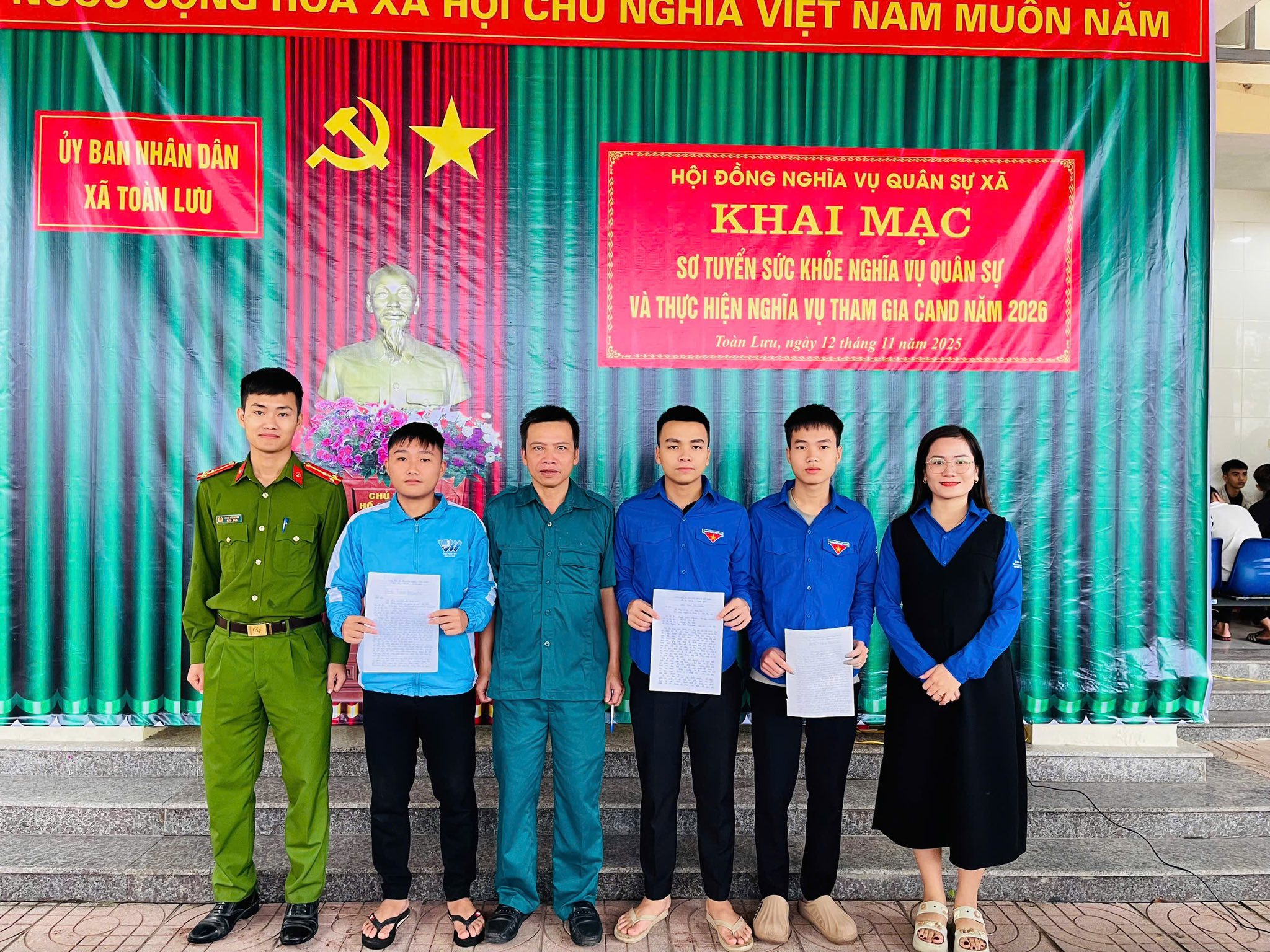 Sáng ngày 12/11/2025, tại Trạm Y tế xã, Ủy ban nhân dân xã Toàn Lưu tổ chức Lễ khai mạc sơ tuyển sức khỏe nghĩa vụ Quân sự và thực hiện nghĩa vụ tham gia Công an nhân dân năm 2026.