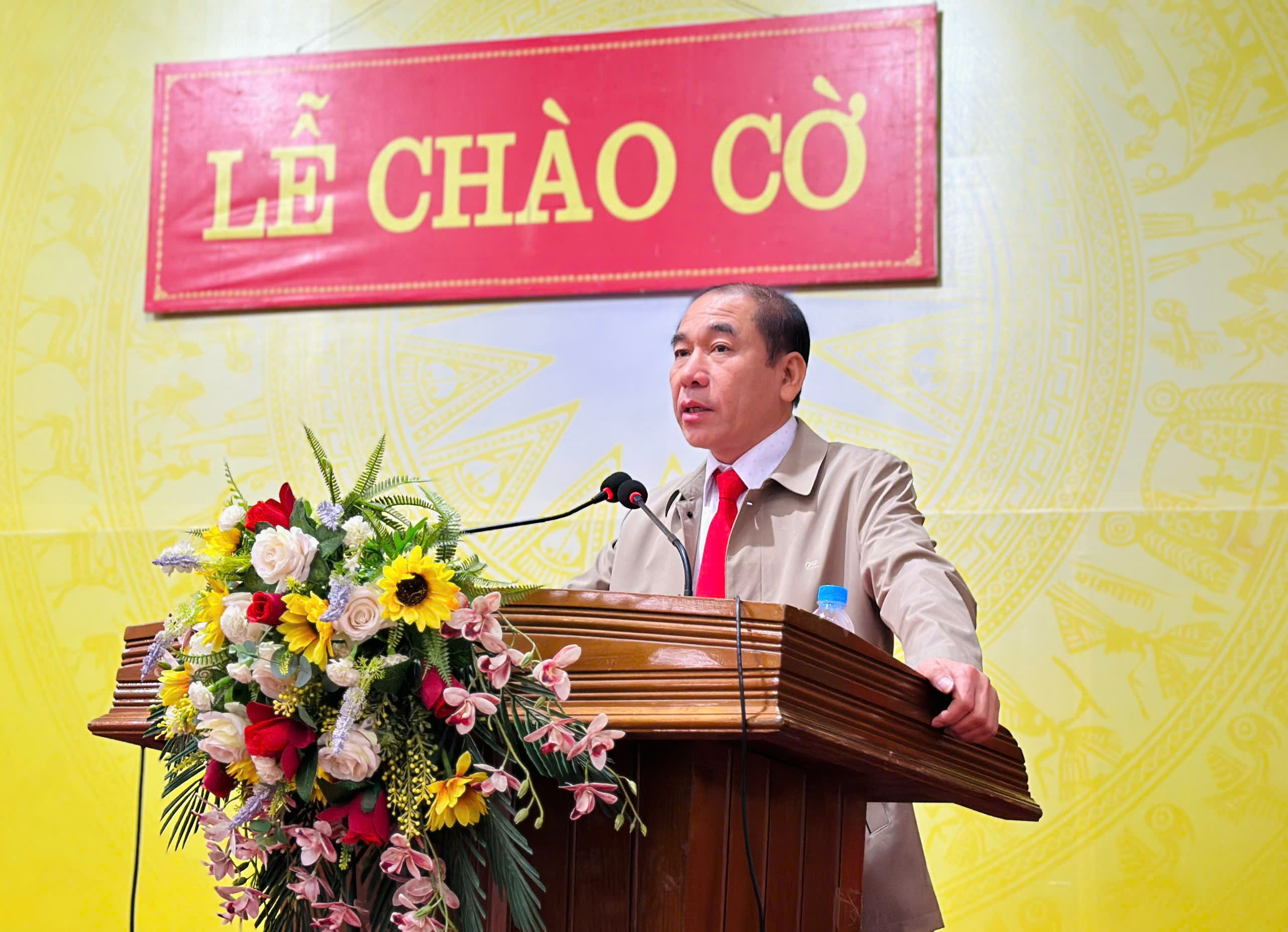 Chủ tịch UBND xã Dương Đức Toàn phát biểu, nêu rõ một số nhiệm vụ cần tập trung thực hiện trong tháng 12