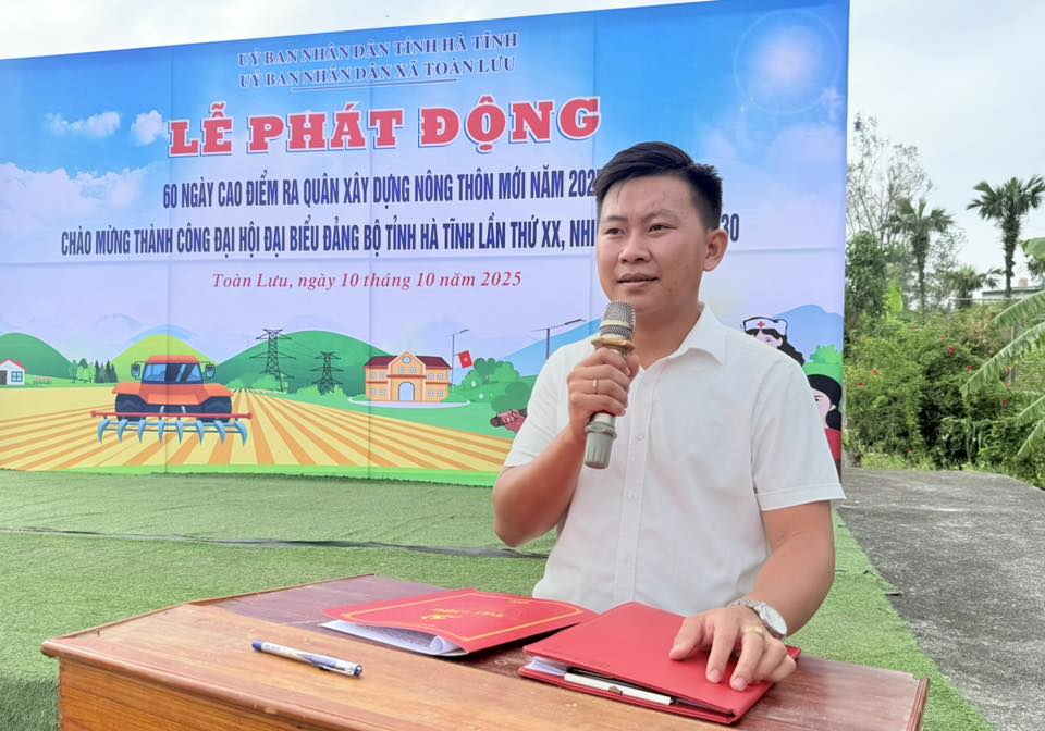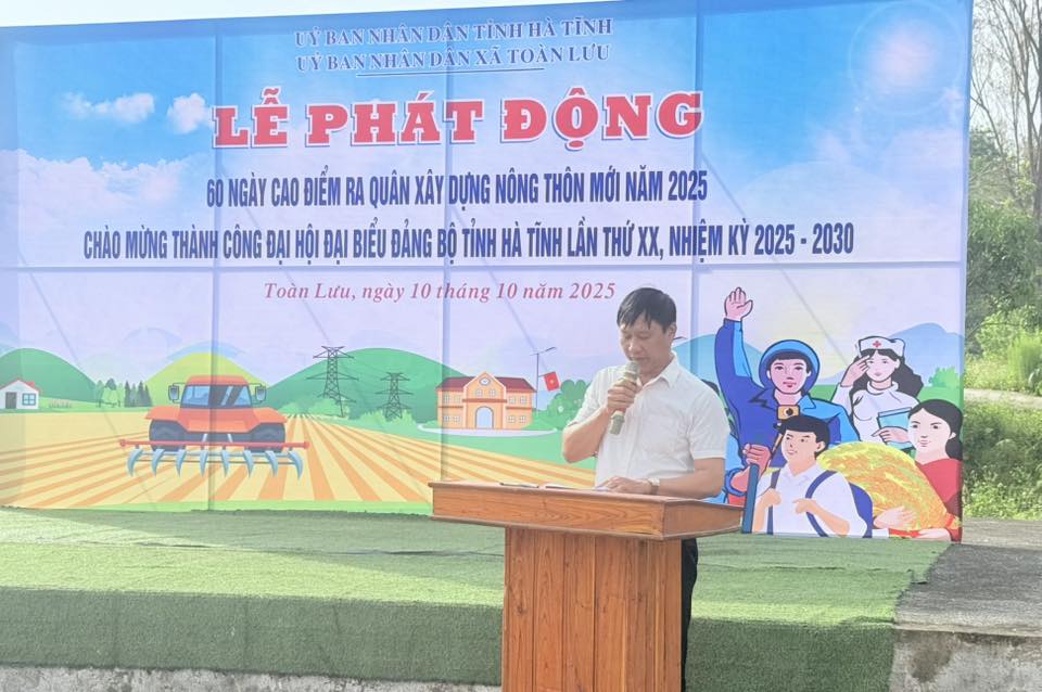 Hưởng ứng phong trào “Cả tỉnh chung sức xây dựng Nông thôn mới, đô thị văn minh”, sáng ngày 10/10/2025, UBND xã Toàn Lưu long trọng tổ chức Lễ phát động 60 ngày cao điểm ra quân xây dựng Nông thôn mới chào mừng thành công Đại hội đại biểu Đảng bộ tỉnh Hà Tĩnh lần thứ XX nhiệm kỳ 2025-2030.