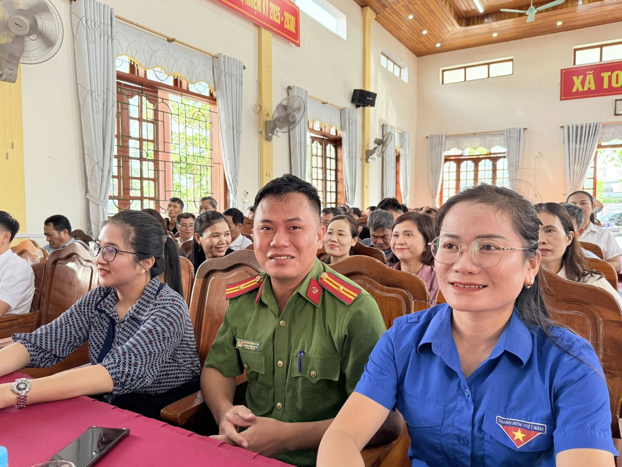 Tham dự buổi lễ có đồng chí Nguyễn Thanh Lâm -Phó Giám đốc Trung tâm Khoa học, Công nghệ và Chuyển đổi số. Về phía xã có đồng chí Thường trực Đảng ủy, HĐND, UBND, UBMTTQ xã, các phòng ngành, đơn vị, đoàn thể, cán bộ công chức, viên chức, người lao động, cùng đại diện 23 Tổ chuyển đổi số cộng đồng và đông đảo nhân dân trên địa bàn xã.