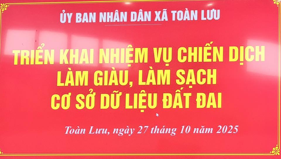 Thực hiện chỉ đạo của cấp trên, UBND xã Toàn Lưu đang triển khai Chiến dịch 90 ngày làm giàu, làm sạch cơ sở dữ liệu đất đai hướng tới hệ thống dữ liệu “đúng - đủ - sạch - sống”, đồng bộ, thống nhất phục vụ người dân và công tác quản lý nhà nước.